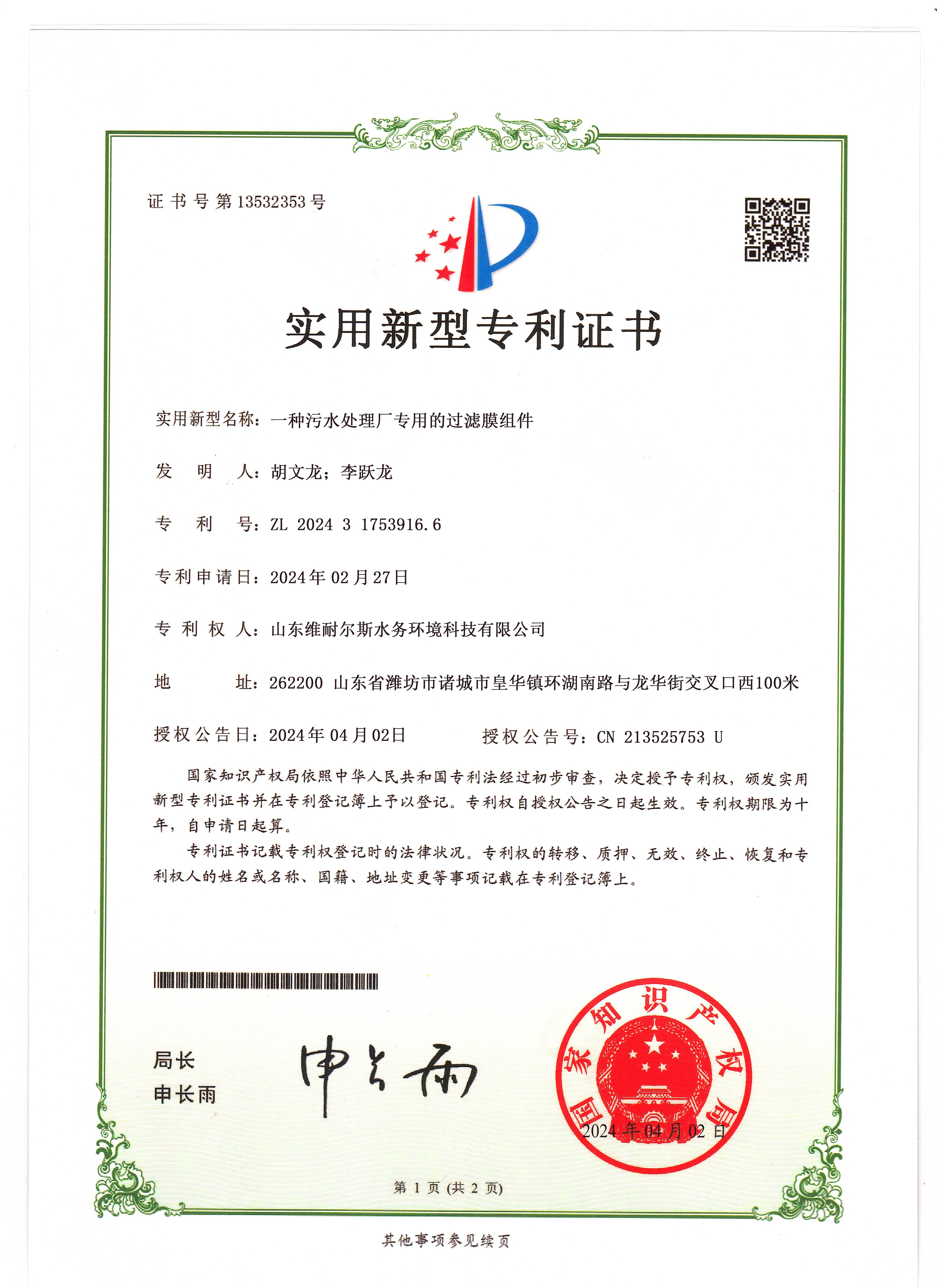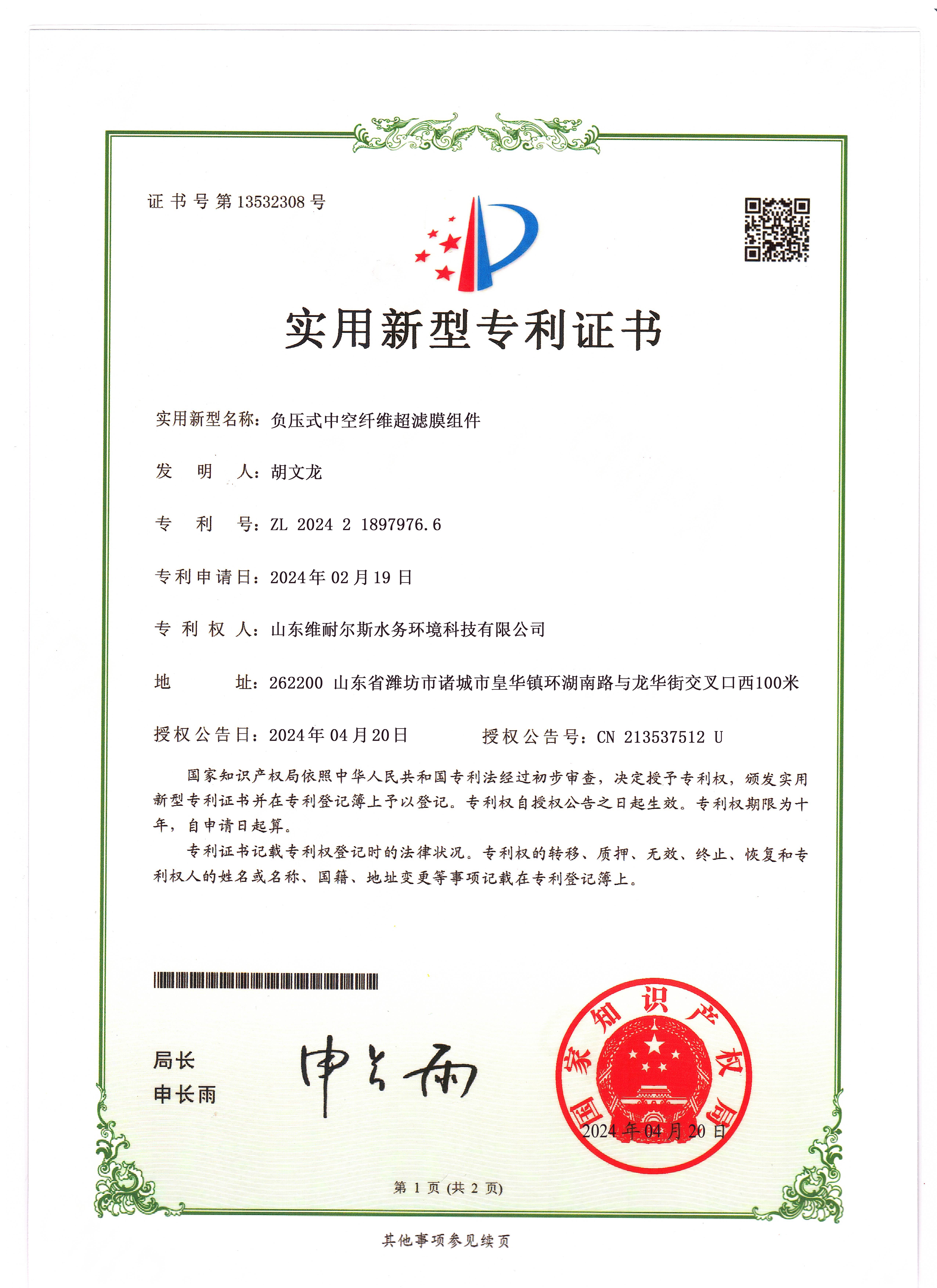 产品描述:产品简介:Product Introduction维耐尔斯MBR膜元件具有膜丝整齐排列、皮层耐剥离、产水水质水量稳定、清洗周期长、使用寿命长等特点,结合专利脉冲